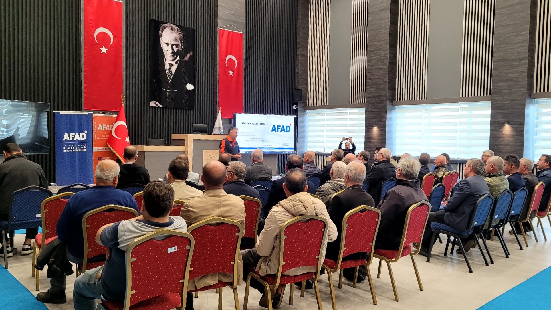 Karacabey Belediyesi Afet İşleri Müdürlüğü öncülüğünde, Bursa AFAD iş birliğiyle “temel afet bilinci” toplantısı gerçekleştirildi. Ergün Koç Kültür Merkezi Meclis Salonu’nda düzenlenen toplantıya, ilçe genelindeki tüm mahalle muhtarları katılım sağladı.